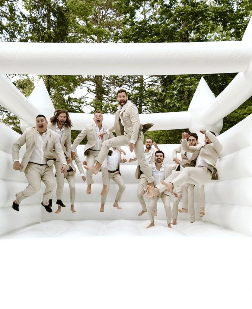 Imaginez vos demoiselles d’honneur et vos témoins bondissant pour des photos de groupe décalées et pleines de vie.